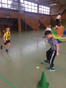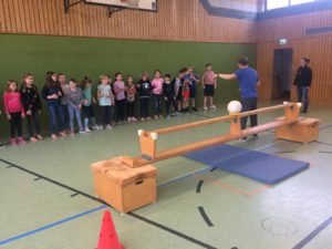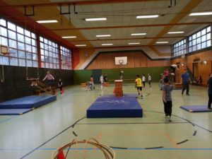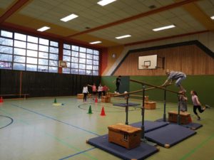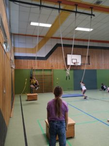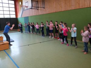 Um noch mehr Bewegung in unseren Schulalltag zu bringen, besuchte uns Herr Tomm von Symbion ein weiteres Mal. Viele erinnern sich bestimmt noch an unser Sommerfest, an dem er das Auffwärmprogramm übernahm. Nun besuchte er uns, um mit den dritten und vierten Schuljahren eine Bewegungslandschaft aufzubauen und zu überwinden. Die neuen Übungen mit Geräten aus unserer Turnhalle machten den Schülern viel Spaß.