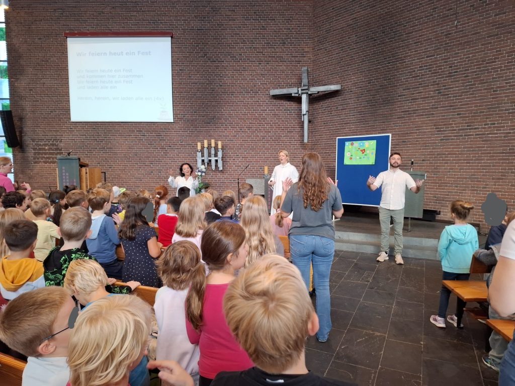 Die gesamte Schulgemeinschaft hat miteinander gesungen, sich bewegt und auch gelacht. Für alle war der Gottesdienst ein schönes Erlebnis im neuen Schuljahr.