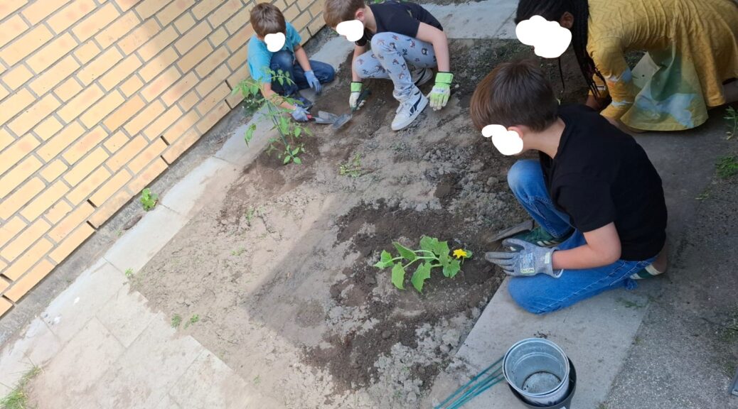 Fleißige Gärtnerinnen und Gärtner im Schulgarten