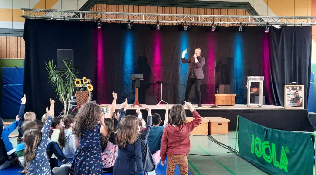 Der Zauberer Matthias Rauch war am 24.06.2021 zu Gast bei uns an der Sonnenschule. Alle Klassen sahen nacheinander eine spannende Show. Ein schwebender Tisch und unterschiedliche Kartentricks brachten die Kinder und Lehrer zum Staunen. Alle Kinder waren sehr begeistert und freuten sich über die tolle Abwechslung.