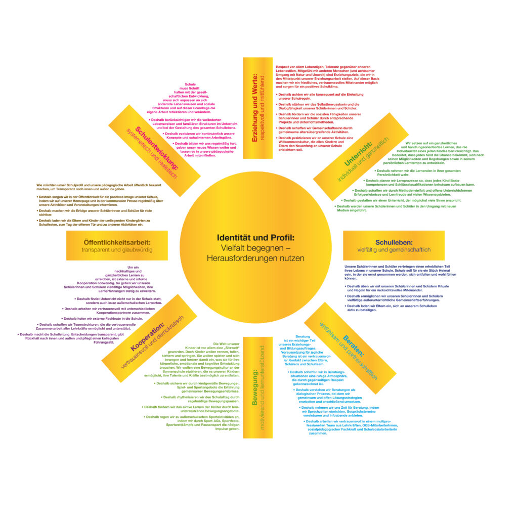 - Deshalb initiiert, organisiert und unterstützt die Schulleitung gemeinsam mit der Steuergruppe Prozesse der gemeinsamen Schulentwicklung.