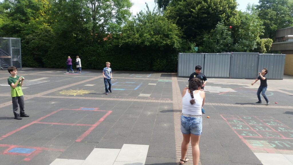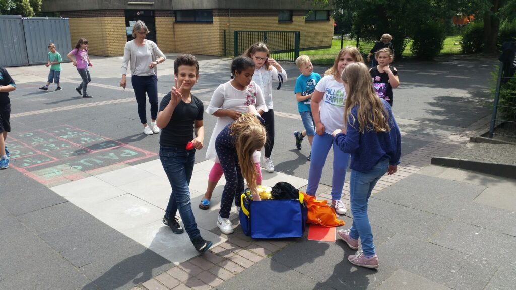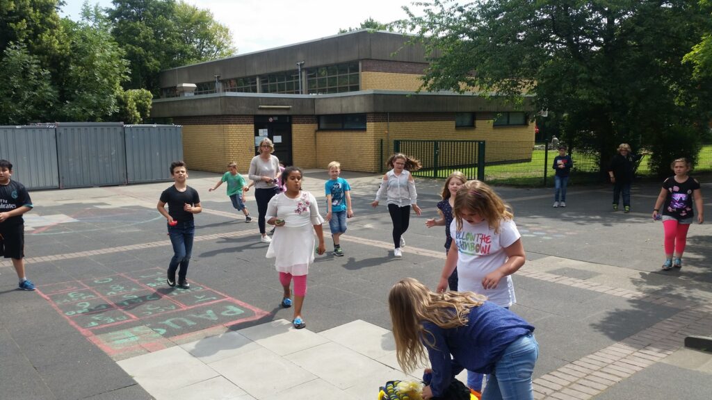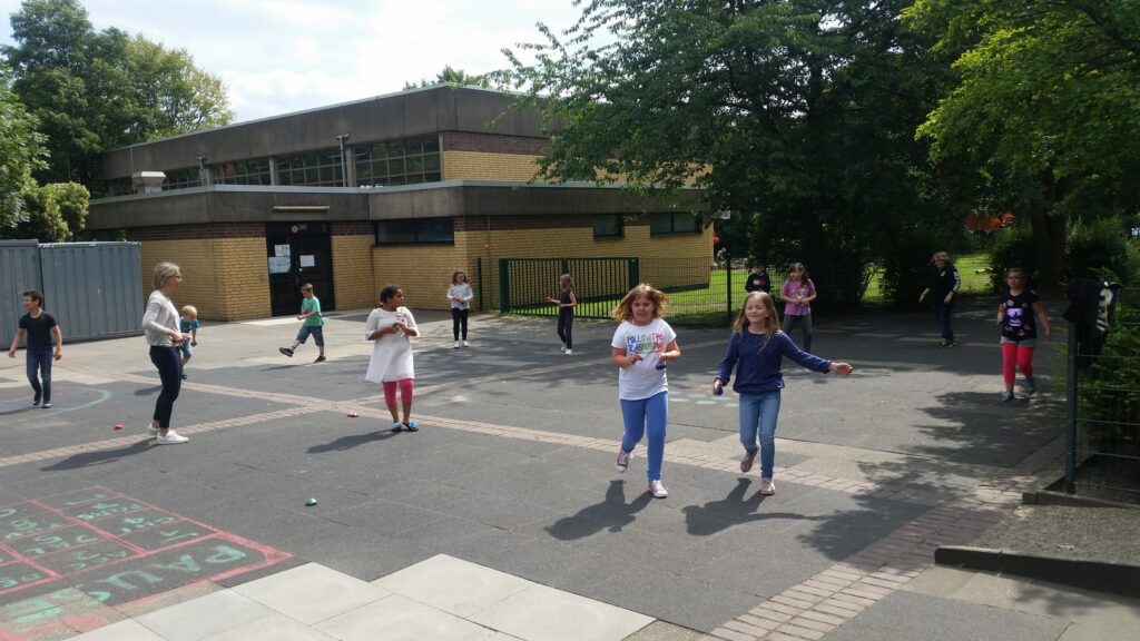 Dank unserer neuen Musikanlage gibt es von nun an bewegte Regenpausen, an denen die Kinder sichtlich Spaß haben.