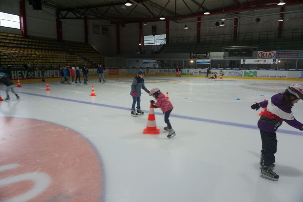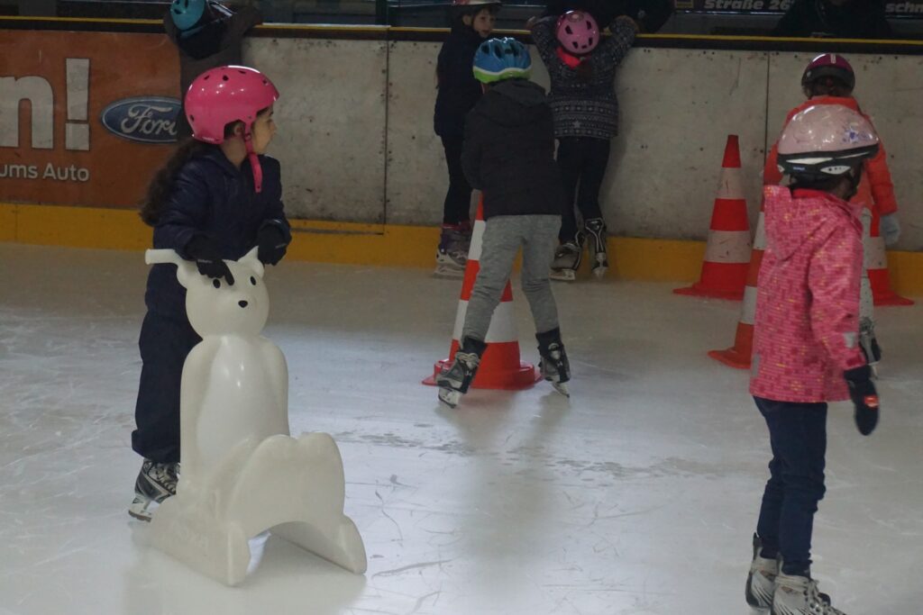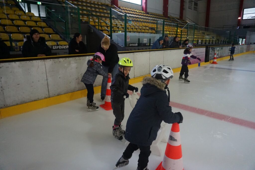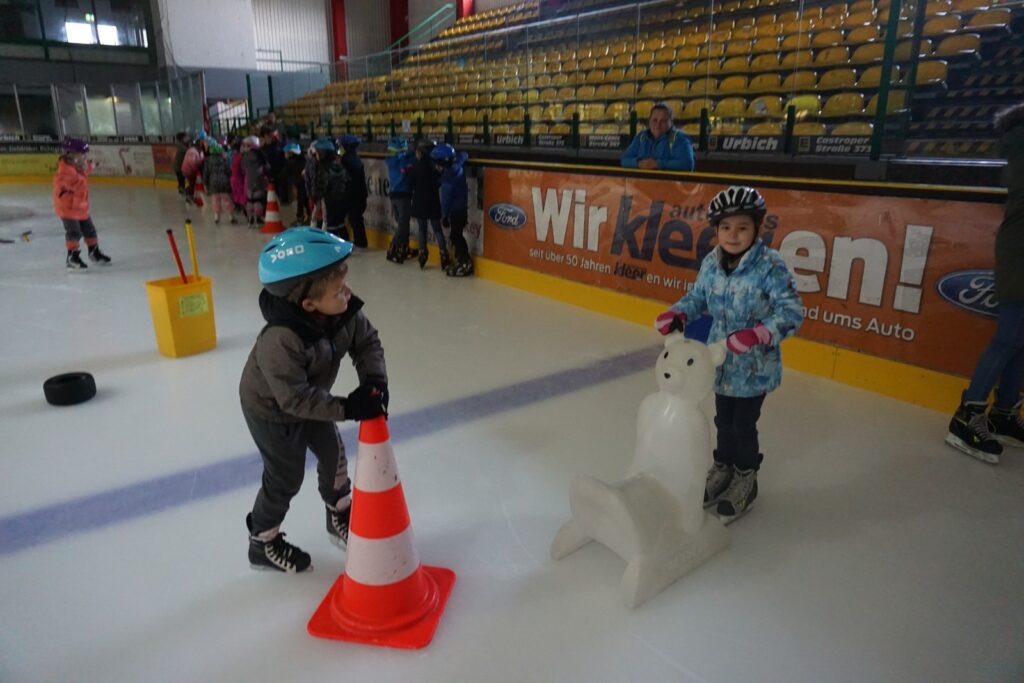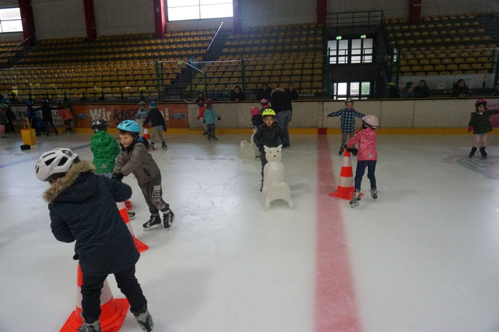 Unsere Zweitklässler gehen einige Wochen während des Sportunterrichts zum Eislaufen. Dies macht allen Kindern immer sehr viel Spaß. Viele Eltern helfen beim An- und Ausziehen der Schlittschuhe, manche trauen sich auch auf das Eis und drehen selber ein paar Runden oder helfen den Kindern beim Erlernen des Eislaufens.